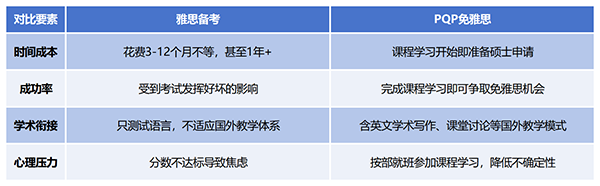 世界名校研究生保障录取计划(PQP)提供完全真实的、正规的海外本科全英文课程学习路径,意味着我们的学生是在真实的学术环境中经常性地使用英语进行听、说、读、写各项技能,这比一次性考试(雅思/托福/PTE...)更能说明学生的英语能力,再加之学生一年项目结束后顺利完成了全英文的课程、论文写作、课堂展示等,能够充分地向国外大学证明其语言能力足以支撑硕士阶段的学业。