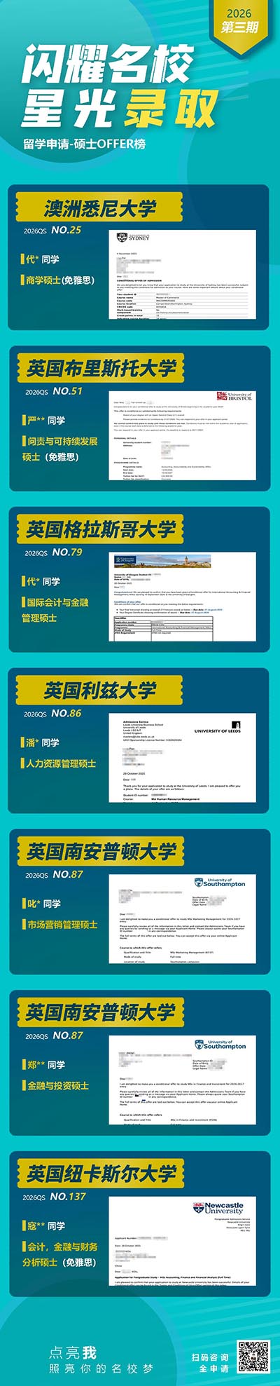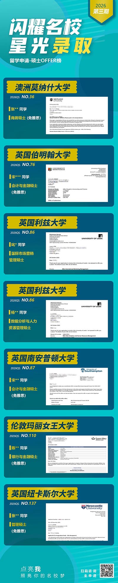 乘之前佳绩之势,西财天府3+1海本同学们愈战愈勇,在我们的专业助力下,成功斩获伯明翰大学录取,再下一城!